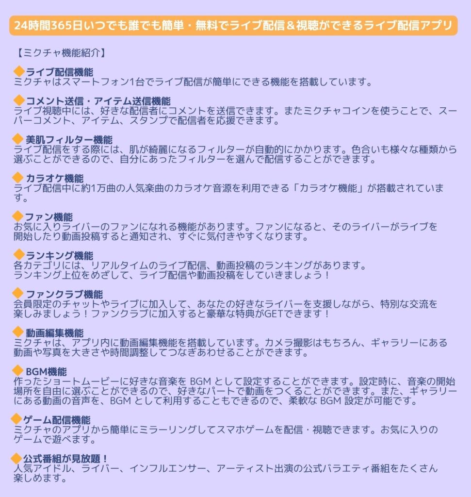 配信アプリ「ミクチャ」でライブ配信をしませんか!